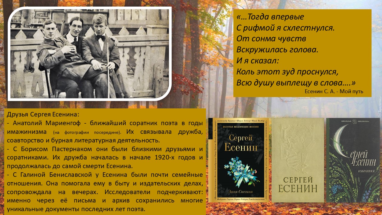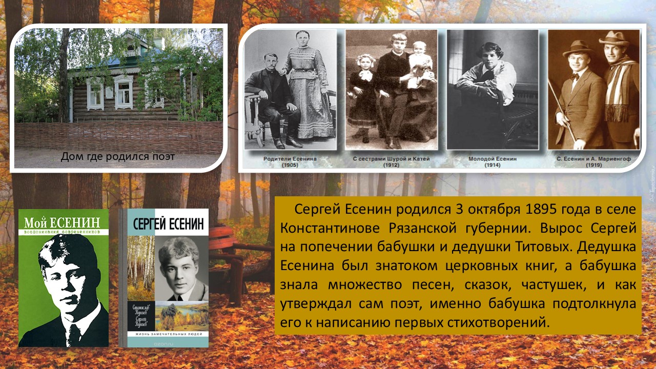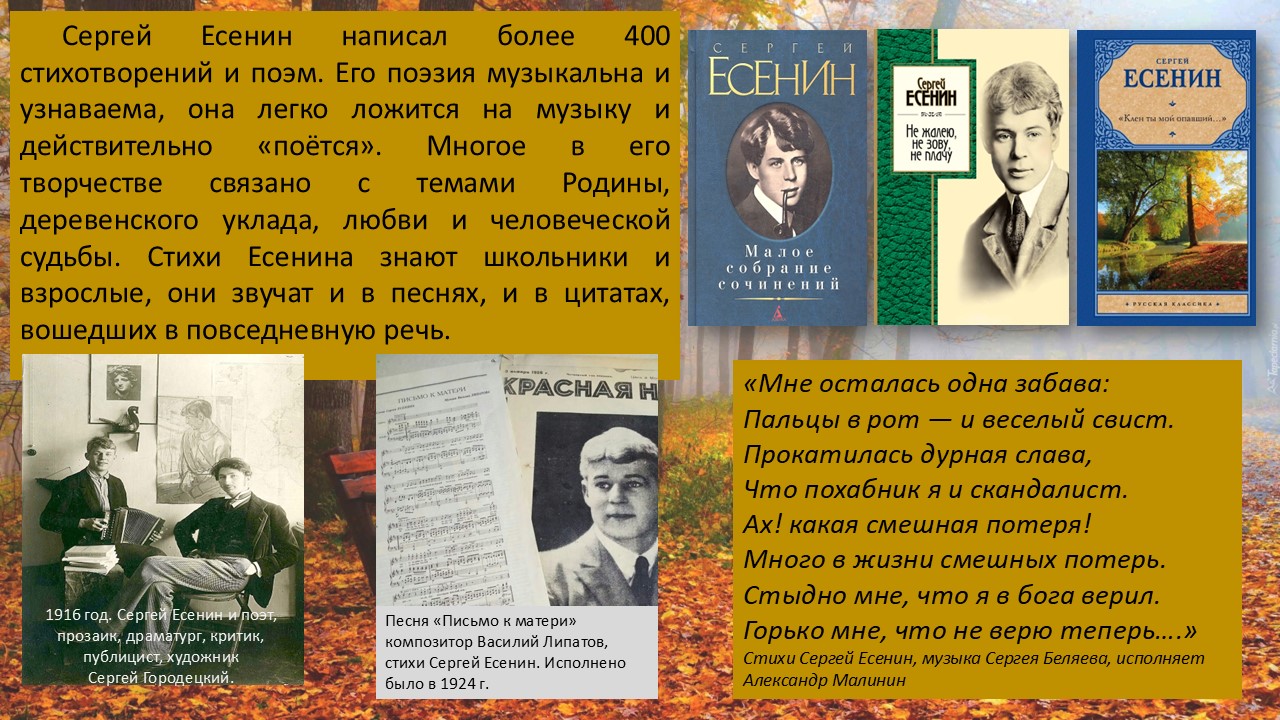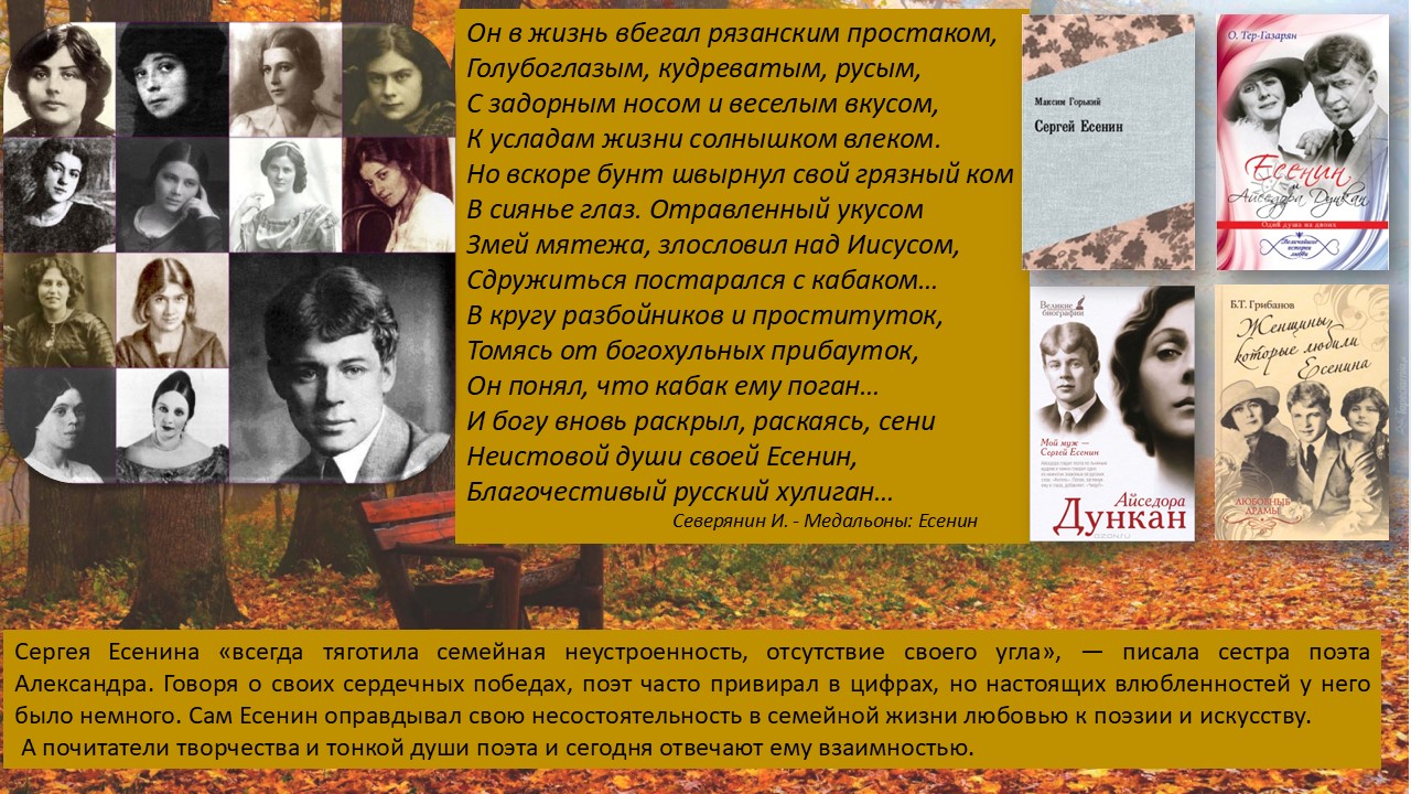 Виртуальная выставка к 130-летию со дня рождения Сергея Александровича Есенина (21 сентября (3 октября) 1895 — 28 декабря 1925) — русского и советского поэта Серебряного века.