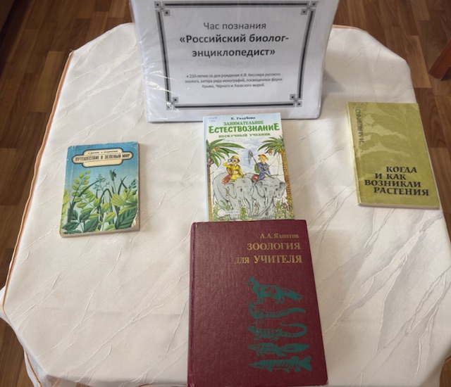 К 210-летию со дня рождения Карла Федоровича Кесслера, русского зоолога, автора ряда монографий сотрудники библиотеки-филиала №7 им. Т.Г. Шевченко провели для слушателей Социально-реабилитационного отделения граждан пожилого возраста и инвалидов №2 «ЦСО г. Симферополя» час познания «Российский биолог-энциклопедист».