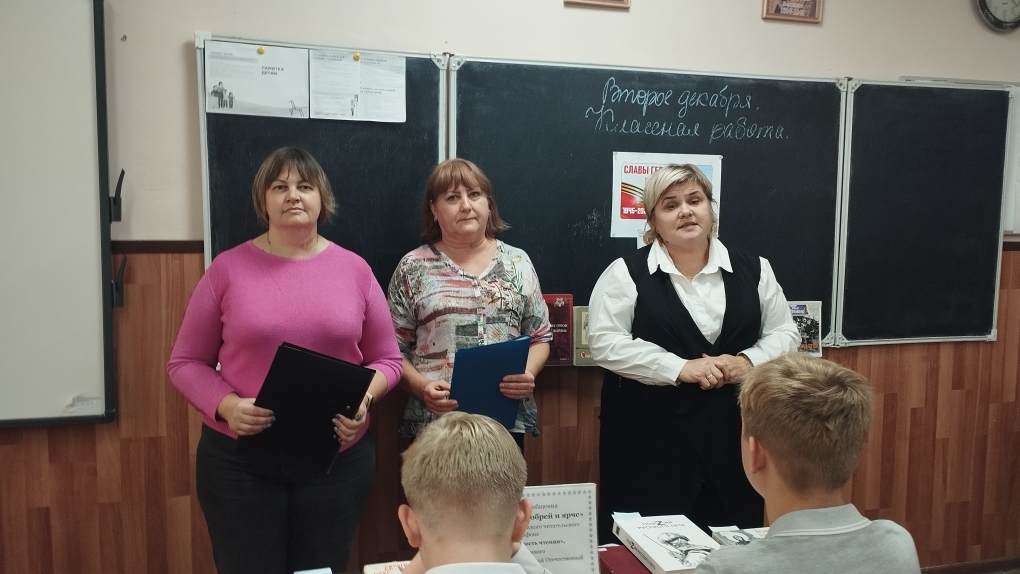 В завершение мероприятия, ребятам провели обзор выставки «С книгой мир добрей и ярче», где были представлены книги о Великой Отечественной войне и о защитниках России, участвующих в СВО.