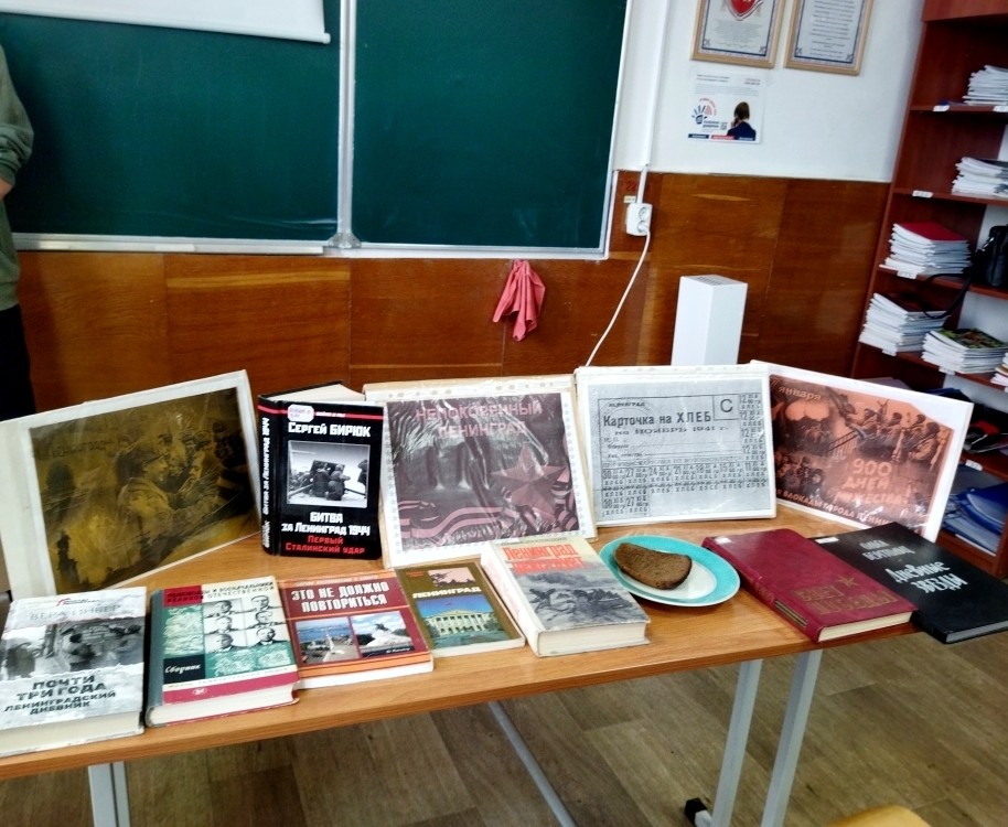 Рассказ сотрудников библиотеки о хронике событий тех дней сопровождался просмотром видеофильмов: «Блокадный Ленинград», К. Симонов «Воспоминания» и прослушиванием «7-ой симфонии» Д. Шостаковича. Слушателям был продемонстрирован символ акции «125 грамм блокадного хлеба» с описанием состава хлеба 1941-1943гг. Студенты читали стихи О. Берггольц и Ю. Воронова и знакомились с представленной литературой на книжной выставке «Непокоренный Ленинград» из фонда библиотеки.