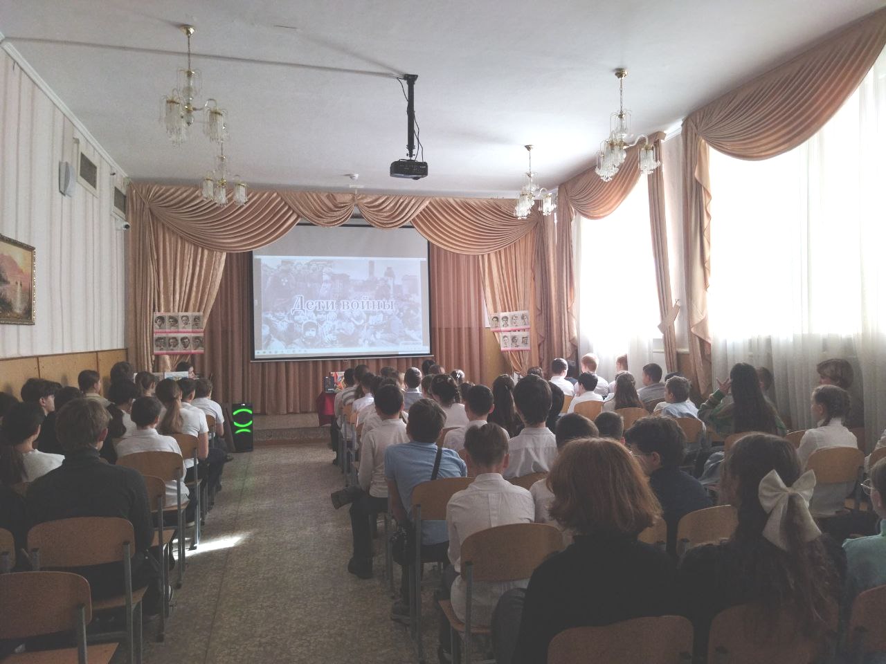 В завершении мероприятия библиотекари рассказали о сегодняшних защитниках нашей Родины. Школьникам был продемонстрирован арт-объект с портретами крымчан-героев Специальной военной операции с кратким описанием их подвигов. Участники мероприятия почтили минутой молчания всех тех, кто погиб в борьбе за нашу Родину.