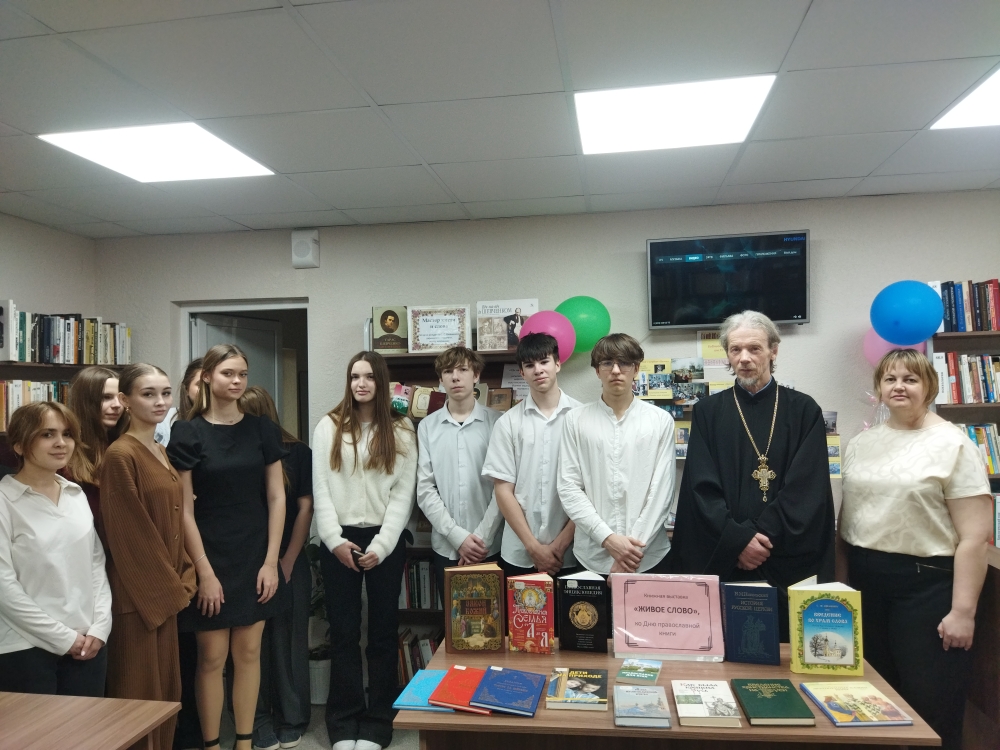 Отец Вадим рассказал о появлении на Руси первой печатной книги и её создателе – Иване Фёдорове, о значительном влиянии православной книги на развитие письменности на Руси, познакомил учащихся с православными книгами. Касаясь современного мира полного цифровыми носителями, отец Вадим акцентировал внимание, что священная книга является носителем «живого слова» и ее нельзя заменить только современными технологиями.