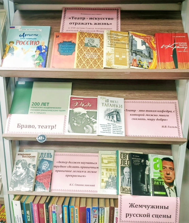 К этой дате в симферопольской библиотеке-филиале №7 им. Т. Г. Шевченко открылась книжная выставка «Театр - искусство отражать жизнь». В разделах «Браво, театр» и «Жемчужины русской сцены», посетители познакомятся с интересными фактами из истории русского театра, с профессиями, без которых невозможен ни один спектакль, могут узнать об истории создания и развития этой важной организации, её роли в поддержке театрального искусства в нашей стране. Также читатели могут познакомиться с инициаторами образования союза, среди которых - писатель И. С. Тургенев, поэт А. Н. Плещеев и художник В. В. Верещагин.