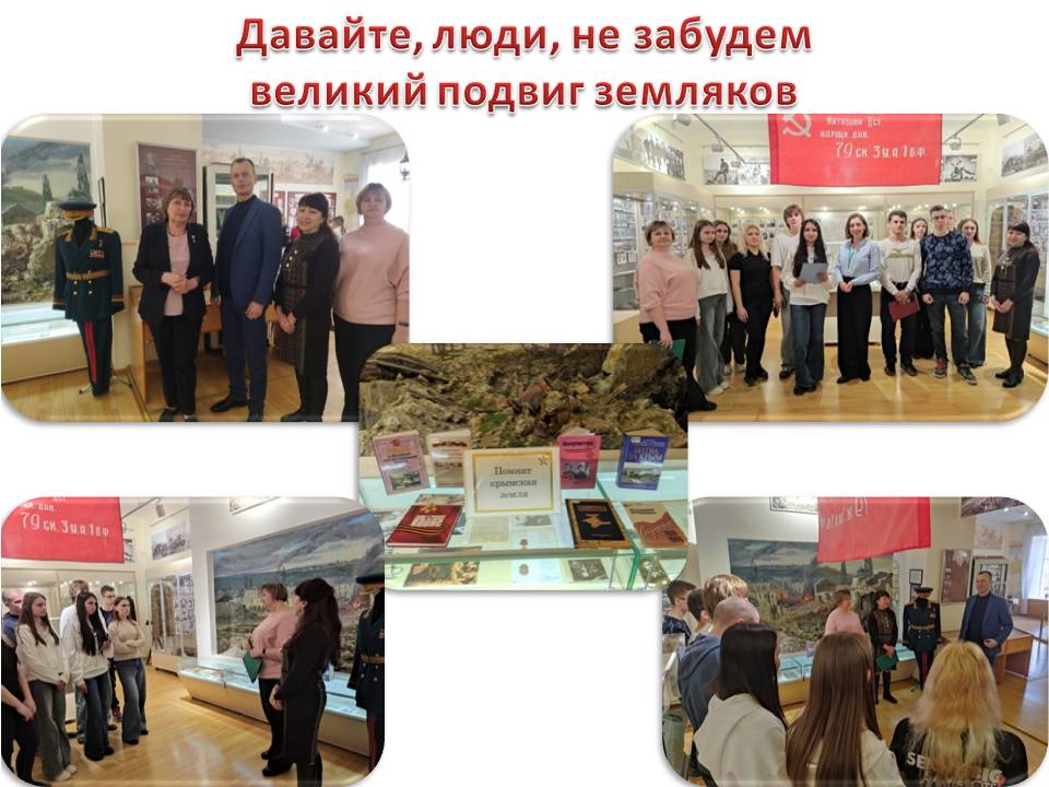 10 апреля в преддверии празднования Дня освобождения г. Симферополя от немецко-фашистских захватчиков библиотека-филиал №7 им. Т. Г. Шевченко совместно с Музеем истории города Симферополя провели мероприятие «Давайте, люди, не забудем великий подвиг земляков», на котором присутствовали гости и студенты «Симферопольского политехнического колледжа имени князя Л. С. Голицына».